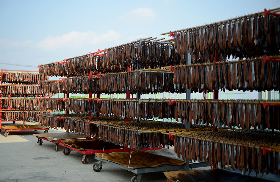 1980년대에 들어서 포항의 시장에서 과메기가 본격적으로 팔리기 시작했습니다. 죽도시장과 구룡포 등에 대규모의 덕장이 들어서는데요. '짜베기'를 발에 넣어 말린 것을 의미합니다. 과미기에 맛을 내는 첨가물을 발라 건조시킬 수 있습니다. 구룡포의 덕장은 대부분 이 '짜배기'를 주로 합니다.