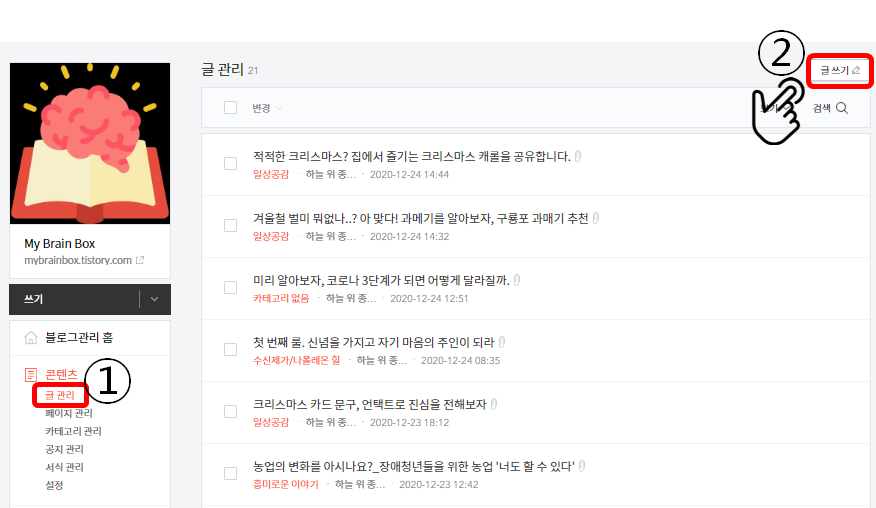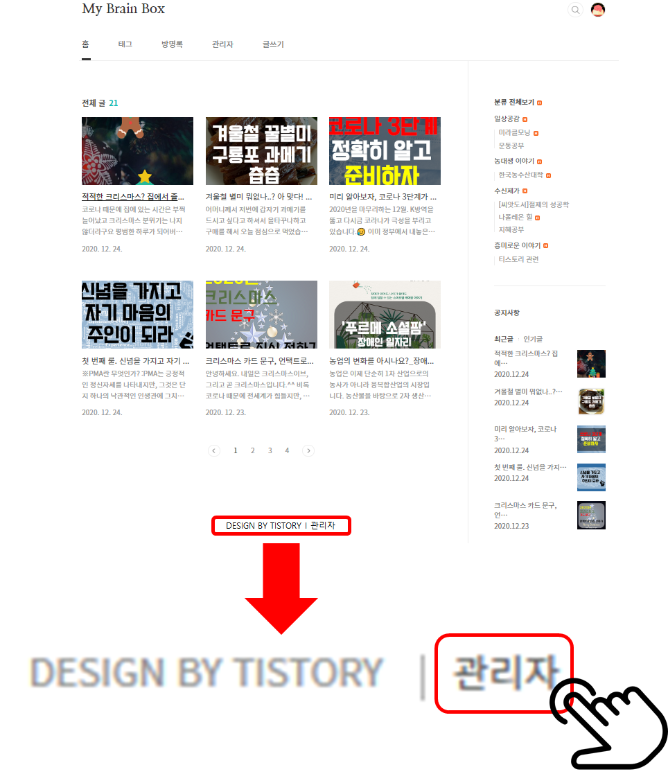 : 티스토리를 처음 하시는 분들은 관리자가 어디에 있는지 헷갈려하시더라구요