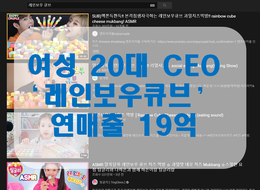 유튜브에서 '레인보우 큐브 치즈'를 검색하면 많은 먹방 유튜버들의 영상을 볼 수 있습니다.