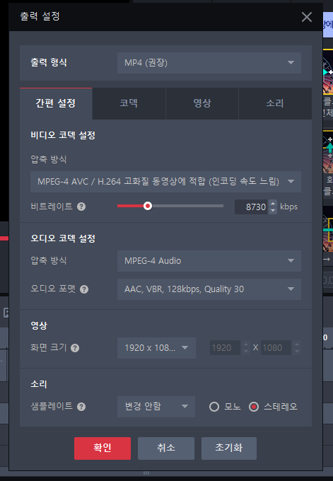 1)비트레이트: 일반적으로 8730 kbps