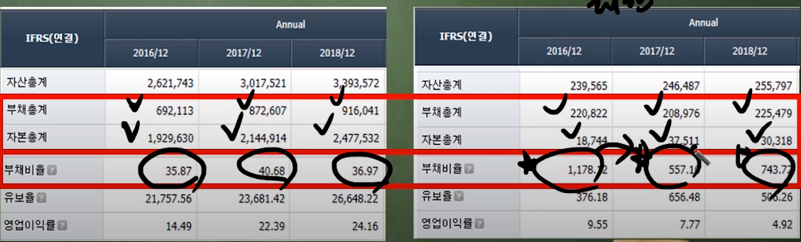 (자기자본과 부채의 비율, 재무상태표 항목) 100%이하면 좋다.