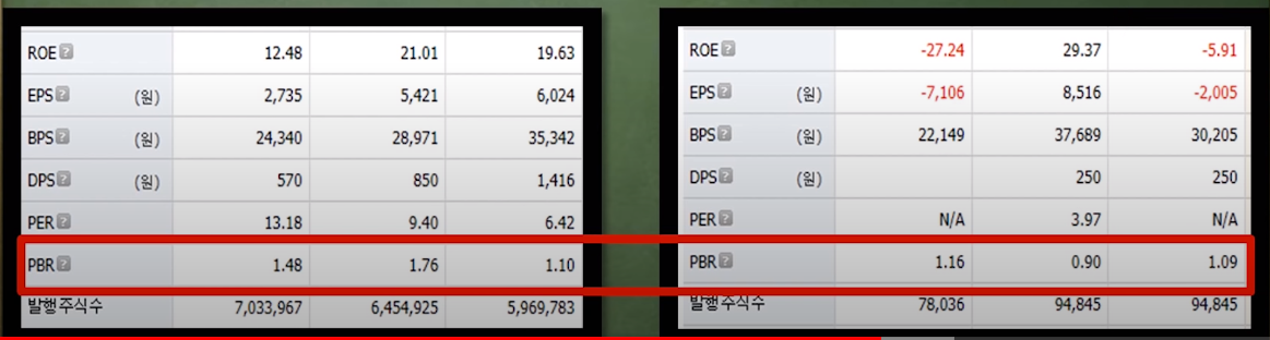낮을수록 현재가치가 저평가 상태 : 매수 ‡ 1배 미만 저평가, 1배 이상 고평가