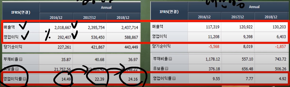 (매출액 중 영업이익, 손익계산서 항목)이 15%이상이면 좋다.