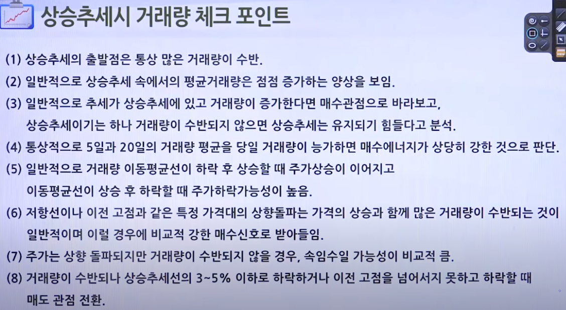 시장상황에 따른 거래량의 특징과 분석방법을 알 수 있다.